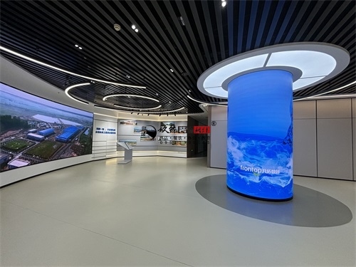今天分享的是青铜峡水利水电办公楼装修设计实景照片,该水利水电办公楼装修设计风格,是银川装修公司镹臻团队擅长的“科技极简风+行业主题叙事”融合设计,既贴合水利水电领域专业属性,又通过现代空间语言传递工程科技的质感,核心关键词可归纳为“沉浸式科技感、主题化场景、极简工业肌理”。从办公楼装修空间基底看,银川筑臻延续了其标志性的“极简工业风”特质——顶面采用黑色竖向金属格栅+嵌入式环形灯带,既用硬朗的工业肌理呼应水利工程的“硬核”属性,又通过流线型灯光弱化冰冷感;地面选择浅灰色哑光地坪,既保证办公空间的整洁耐用,又以低饱和色调衬托陈列物品的视觉重心。