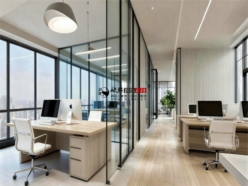 该办公楼装修设计开放与私密并存,功能与美学共生。大厅装修设计中,其大面积玻璃幕墙引入城市景观,让视野与灵感一同舒展;办公区与会客区,其简洁的线条与温润的材质相互平衡,营造出克制而不失温度的现代办公楼装修设计氛围。