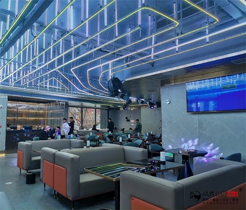 今天分享的是青铜峡鼎龙餐厅设计装修项目实景鉴赏,这家音乐餐厅设计装修理念以未来感与时尚感的融合为核心,打造沉浸式娱乐餐饮空间。在视觉呈现上,运用大量霓虹灯光与几何线条,如墙面的环形光带、立体几何造型,搭配黑白色调的强烈对比,营造出赛博朋克式的前卫氛围,契合年轻群体对潮流空间的追求。该家音乐餐厅设计装修方面,从空间布局上看,将KTV包厢的休闲属性与餐厅的用餐功能结合,舒适的卡座与餐桌一体化设计,既满足社交娱乐需求,又保证用餐的便利性。银川装修公司镹臻团队紧扣着潮流沉浸式空间的设计装修理念,结合银川本地对餐饮空间的消费偏好,通过灯光系统的智能调控与主题化的软装搭配,实现了视觉冲击与功能实用的平衡。